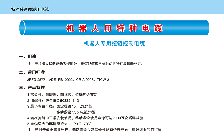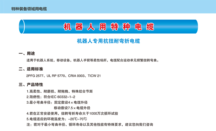 機(jī)器人用特種電纜