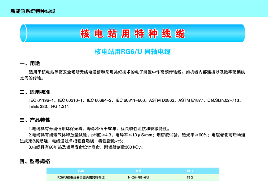 核電站用RG6/U同軸電纜