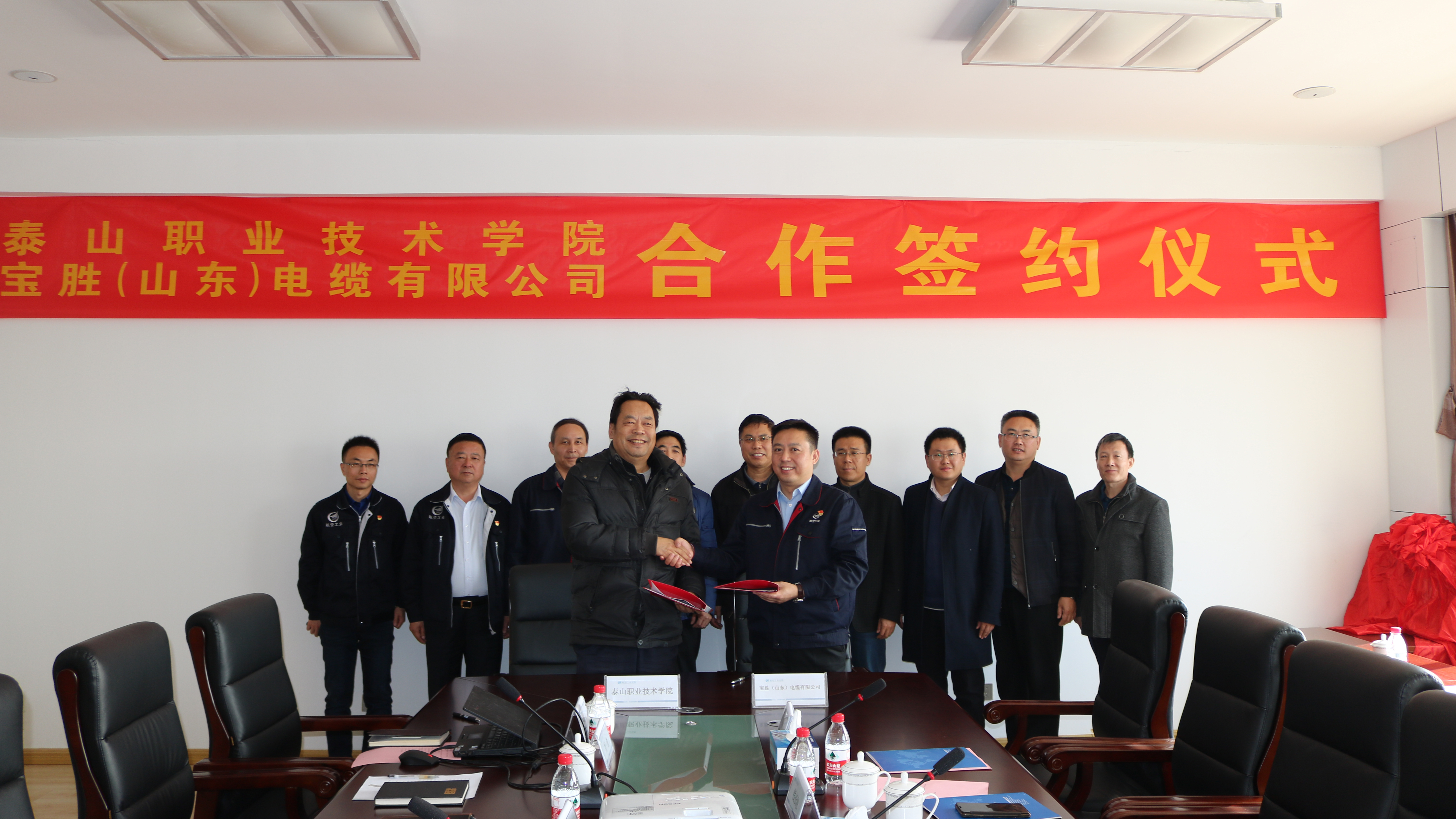11月19日上午,寶勝(山東)電纜有限公司與泰山職業技術學院進行了校企合作簽約儀式。泰山職業技術學院黨委副書記張清民,學院校企合作辦公室主任錢長松,學院機電工程系主任劉永海,寶勝股份副總裁、寶勝山東董事長、總經理施云峰及寶勝山東經營班子成員參加了本次儀式。