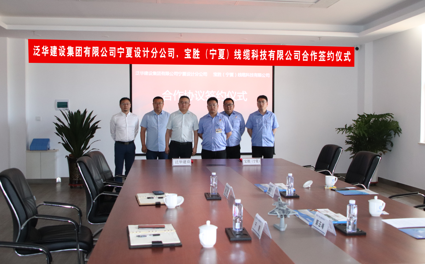 5月19日,寶勝(寧夏)線纜科技有限公司與泛華建設集團有限公司寧夏設計分公司舉行了合作協議簽約儀式。泛華建設集團副總經理郭玉峰、湯昌衛,寶勝寧夏公司執行總經理于蒙,副總經理向軍、衡超參加活動。