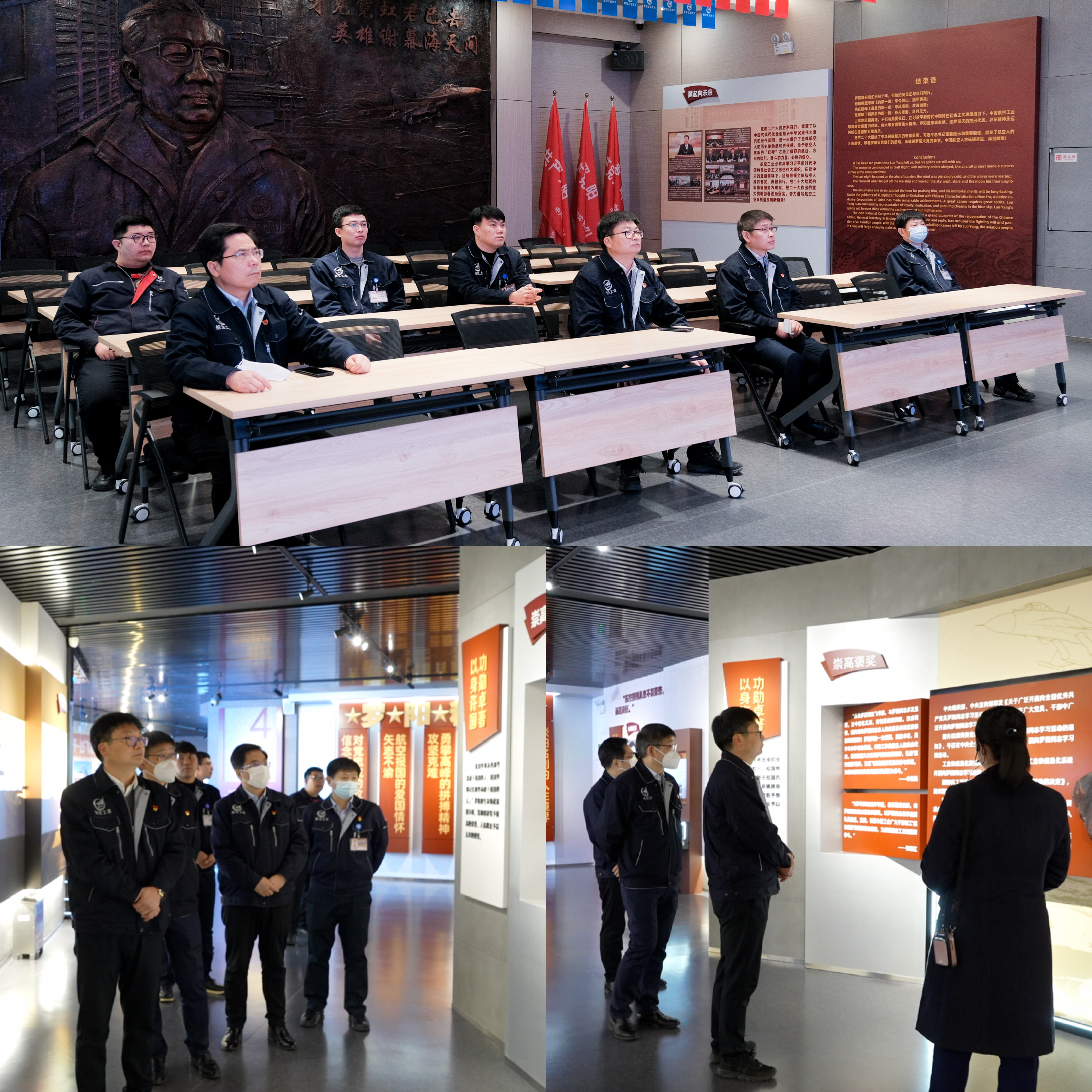 參觀期間,生長山一行在航空博覽園認真聽取講解員介紹,體驗飛機制作流程,了解我國歷年來自主研發的軍用飛機發展歷程和取得的輝煌成就。在羅陽紀念館,一行人詳看羅陽生前使用過的辦公用品、水杯、圖書等,聆聽講解員講述關于羅陽生前工作中的點點滴滴,并觀看了紀念羅陽專題片,深切感受這位航空英模矢志報國、鐵肩擔當而又低調謙虛的樸實作風,更直觀地了解到羅陽從小立志航空、學習航空到獻身航空的傳奇一生。