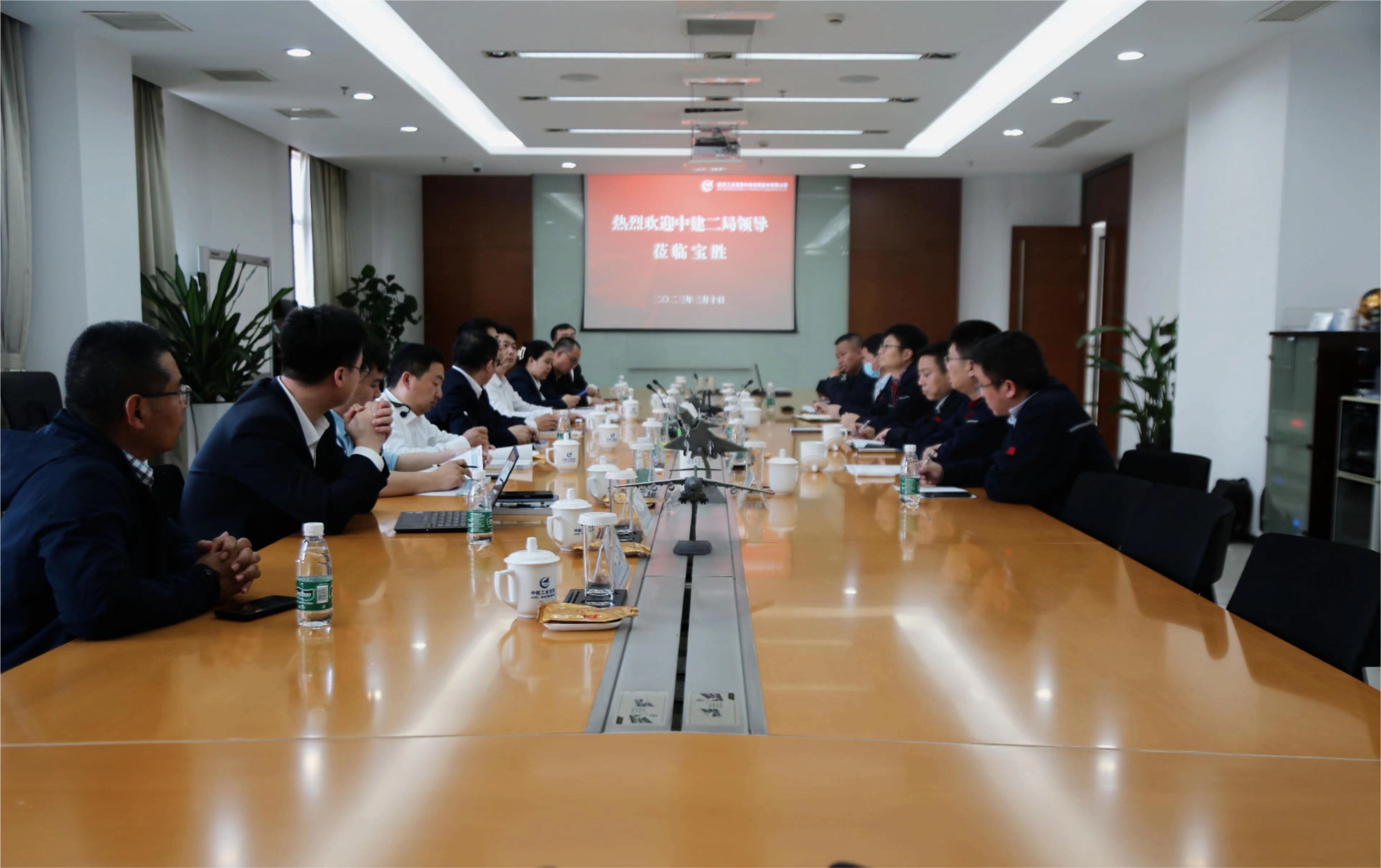 2023年3月10日,中建二局總部商務管理部副總經理李運濤率隊來訪寶勝參觀交流。寶勝股份黨委書記、董事長生長山,黨委委員、副總經理施云峰,總經理助理、營銷管理中心總經理郭劍,總經理助理、生產管理中心總經理李杰等熱情接待并座談。
