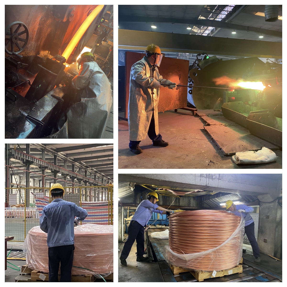 一線工人們身著防燙服,頭戴防護面罩,一次又一次地與“熱辣滾燙”的爐渣發生碰撞,保障著出爐鑄坯的質量;伴隨著機械低沉的隆隆聲,銅水經過保溫爐逐步形成約900℃的鑄坯,即使站在10米開外,仍能感到滾滾熱浪;操控室的師傅們認真細致地檢查每一段銅桿的外觀質量,有條不紊地進行著規范操作;一捆捆4噸重的銅桿安全落地,收線工人配合著自動化設備進行檢查、打包,一絲不茍地完成各項任務。