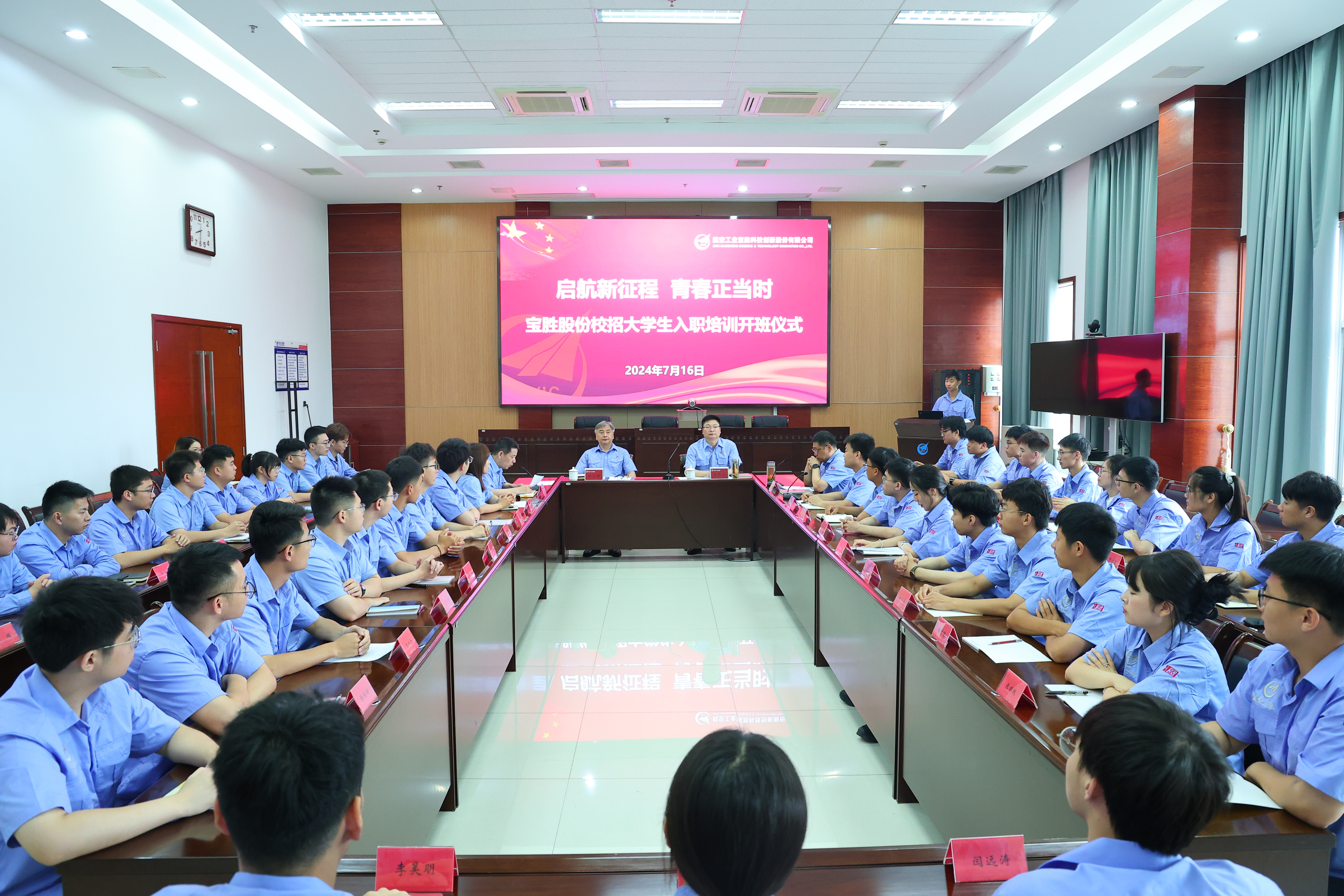 為進一步增強新入職員工對企業的認同感和歸屬感,幫助他們快速轉變角色,以全新姿態、昂揚斗志投入工作,7月16日上午,寶勝股份舉辦2024屆新員工入職培訓班開班儀式。寶勝股份黨委書記、董事長生長山,黨委副書記、工會主席宋宇峰出席會議,來自各院校的42名畢業生參加活動。公司黨委干部部/人力資源部副部長魏宗波主持開班儀式。