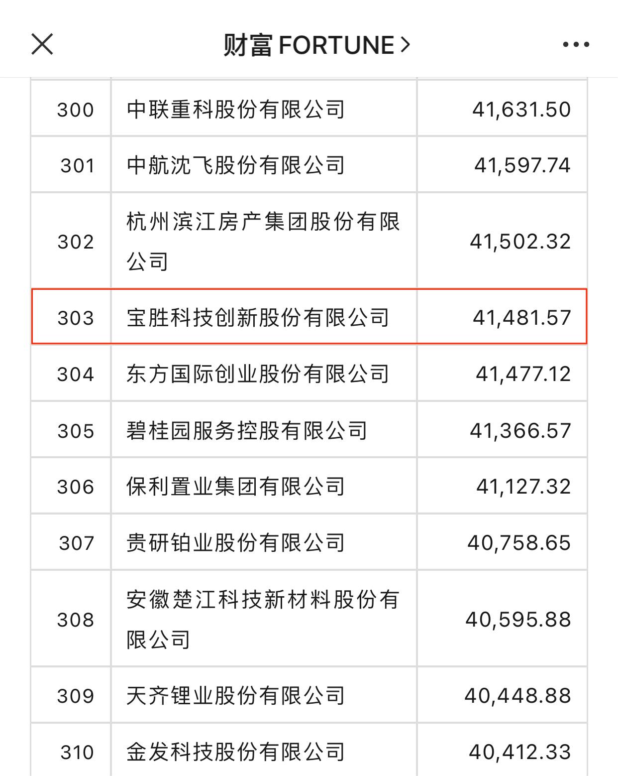 近日,2023年《財富》中國上市公司500強排行榜正式發布,寶勝股份位列第303位。