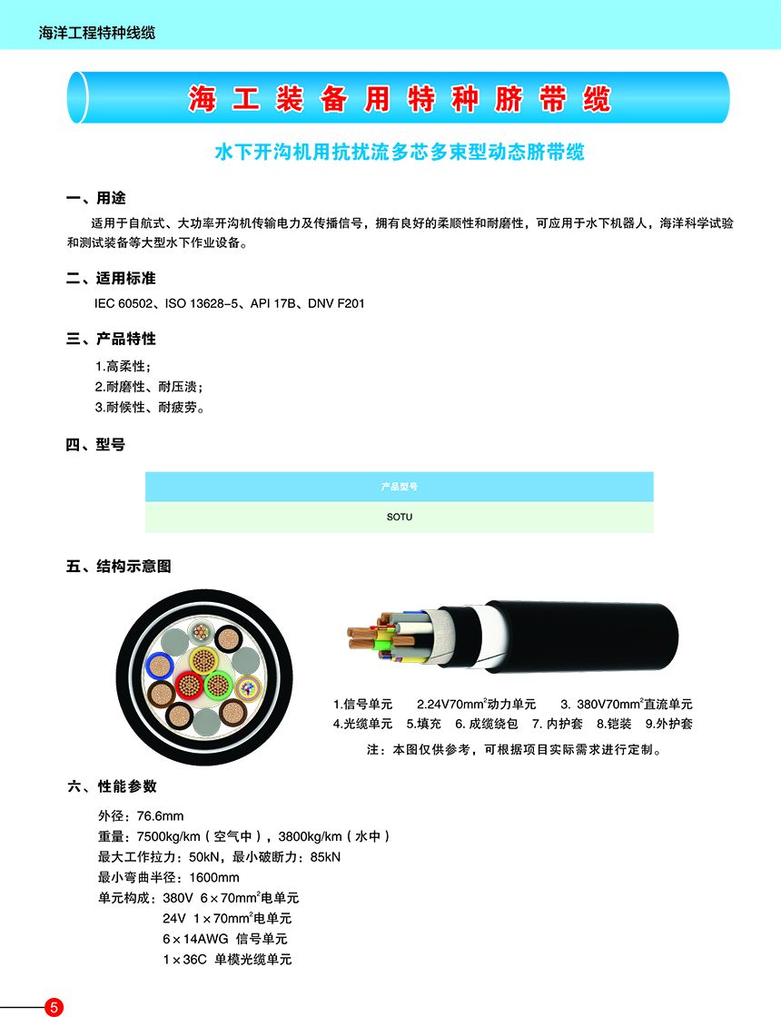 1-6 深海ROV用非金屬鎧裝輕型臍帶纜