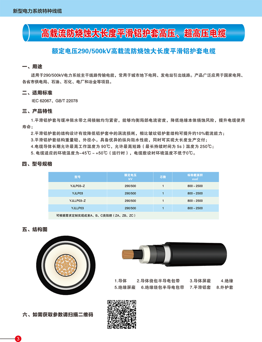 1-2 額定電壓127/220kV高載流防燒蝕大長度平滑 鋁護套電纜