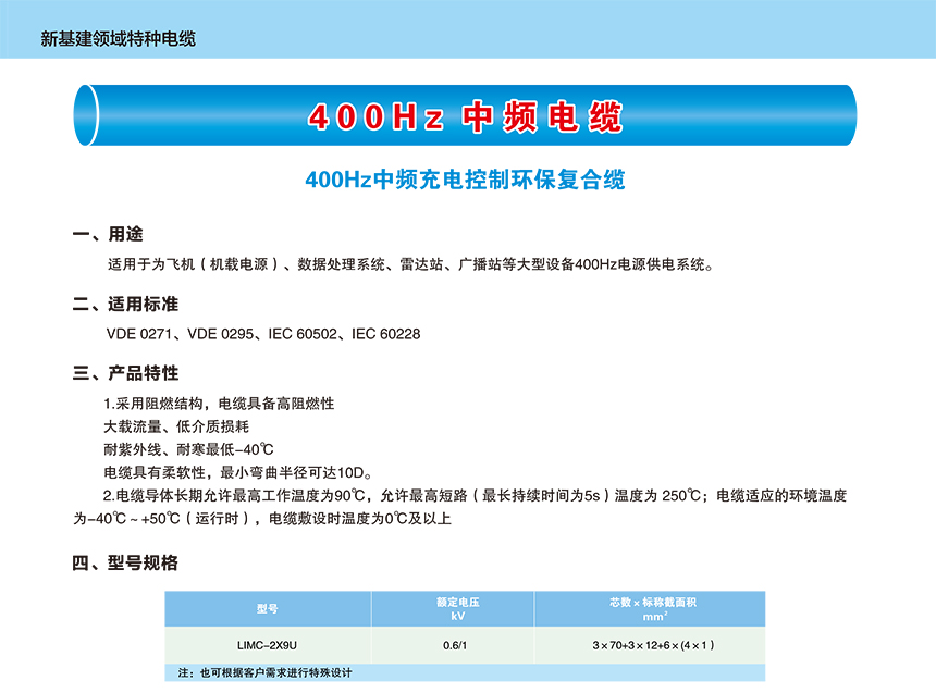 1-1400Hz中頻大容量電源電纜